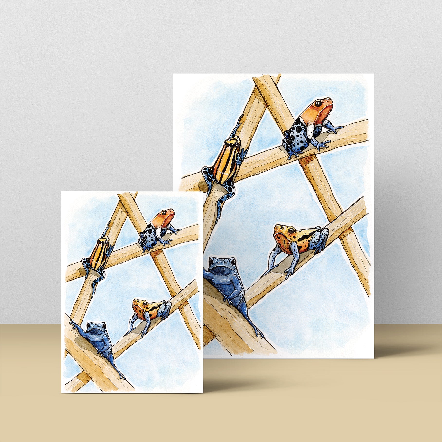 Inspired by the vivid colours and patterns of dart frogs, this artwork brings a bold, energetic presence to your wall.